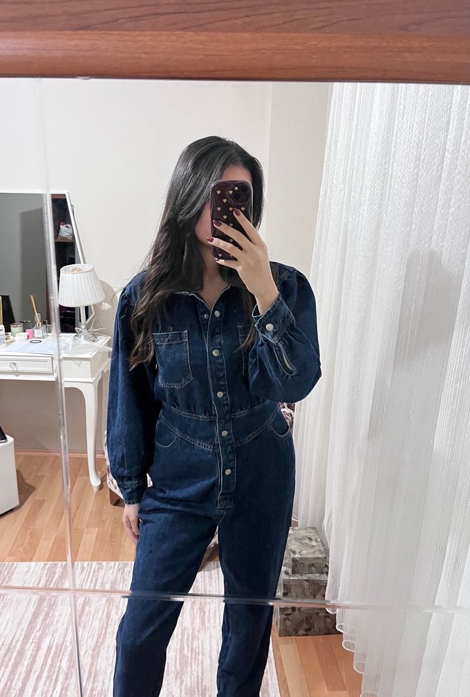 Kadın Lacivert Denim Tulum