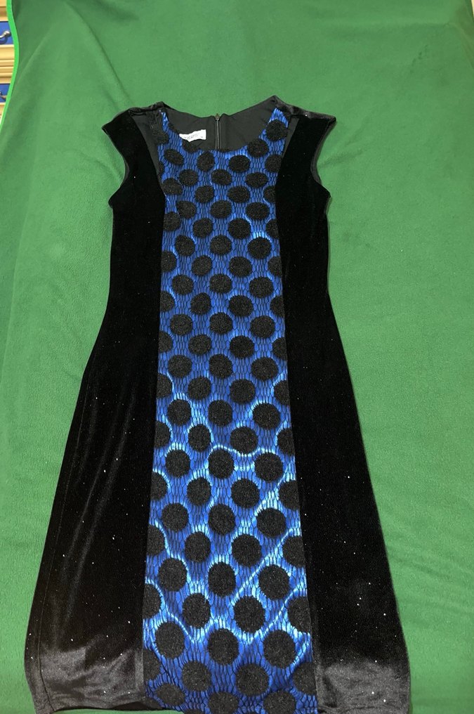 Lacivert desenli, pileli detaylara sahip, kolsuz ve vücuda oturan uzun abiye elbise, gotik tarz partiler için uygundur. ✨(Göründüğü kadar uzun değil; ben 165’im dizime geliyor. Görülen beyazlıklar elbisenin simi leke değildir.)