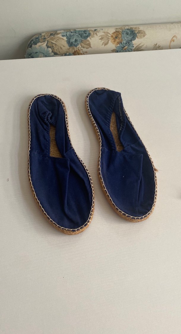 Kadınlar için lacivert renkte, vintage el yapımı hasırdan ayakkabı