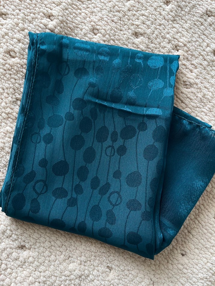 Kadınlar için koyu mavi, saten dokulu ve drapeli tasarıma sahip şal. Ürün sıfırdır