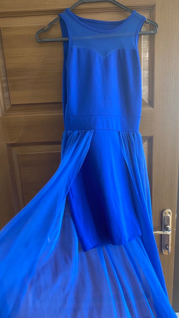 Kadın Lacivert Drapeli Uzun Abiye Elbise