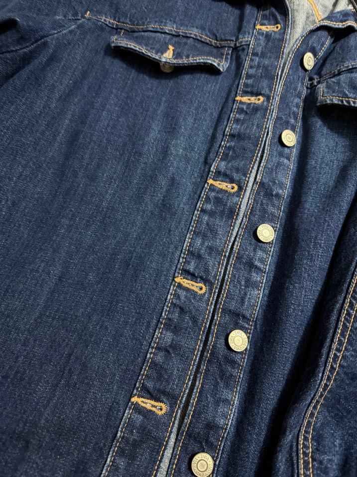Kadınlar için lacivert denim ceket, düğmeli ve yakası kesik detaylıdır. Normal boyda, regular fit ve uzun kolludur, günlük rahat stil için uygundur. ✨