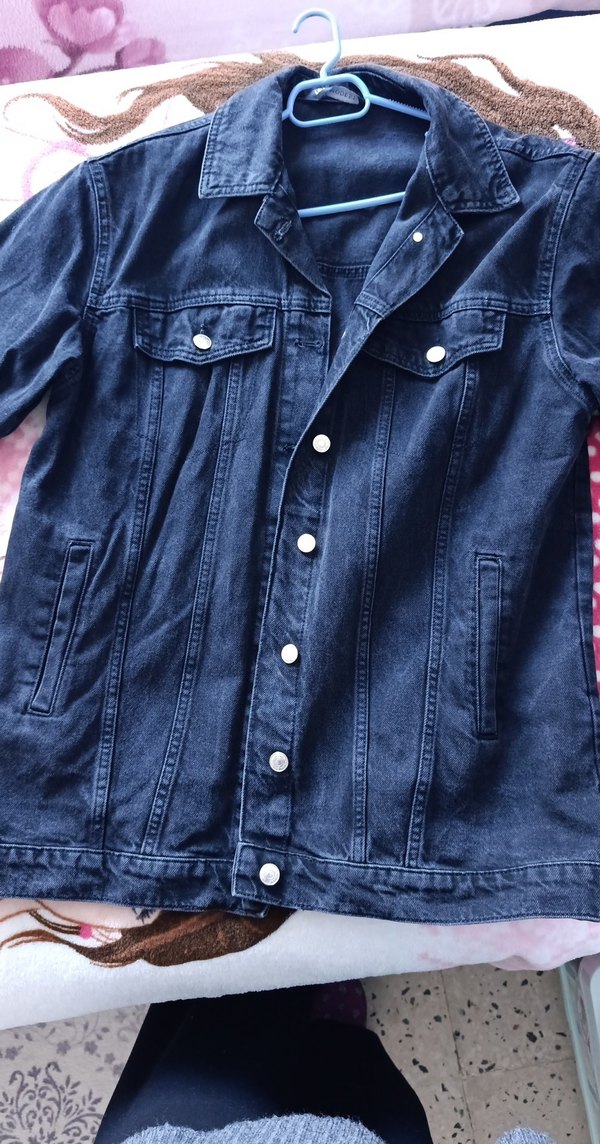 Lacivert düğmeli denim ceket, notlu yaka ve uzun kolludur. Salaş kesimi ve midi boyuyla günlük sokak stiline uygundur.