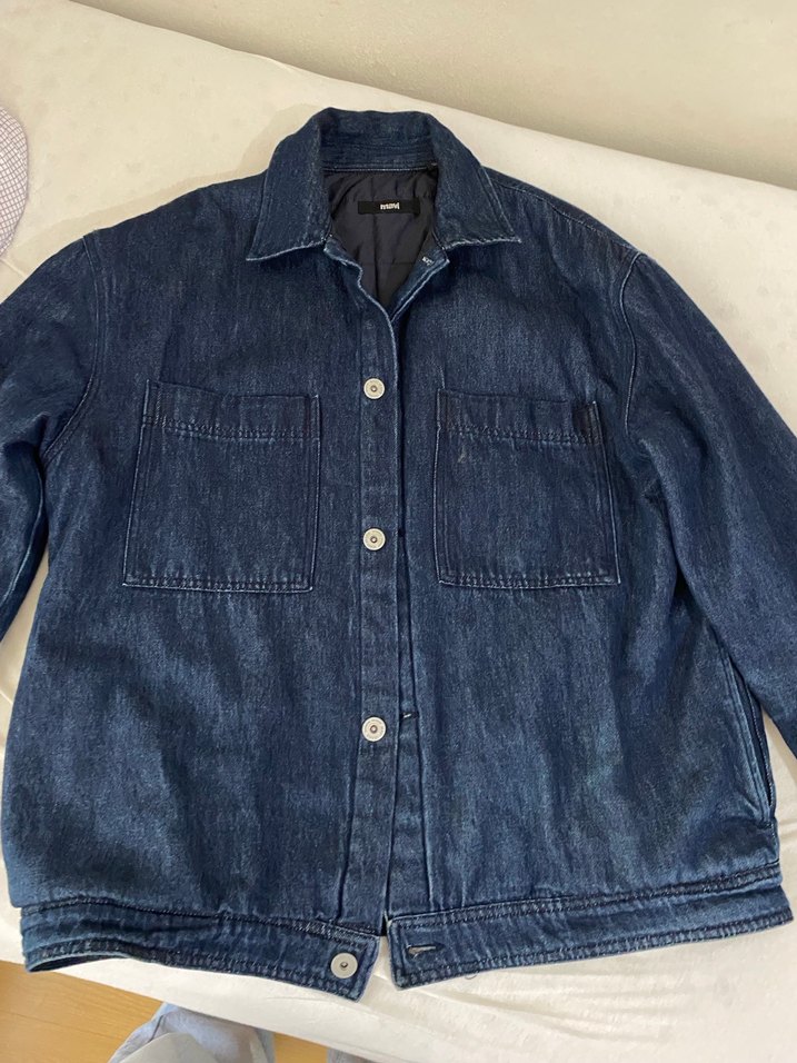 Kadınlar için lacivert denim ceket, bol kesim, uzun kollu ve çıtçıtlı ön kapama ile. İki cep ve klasik yaka detayına sahip, günlük kullanıma uygun rahat bir sokak stili parçası.