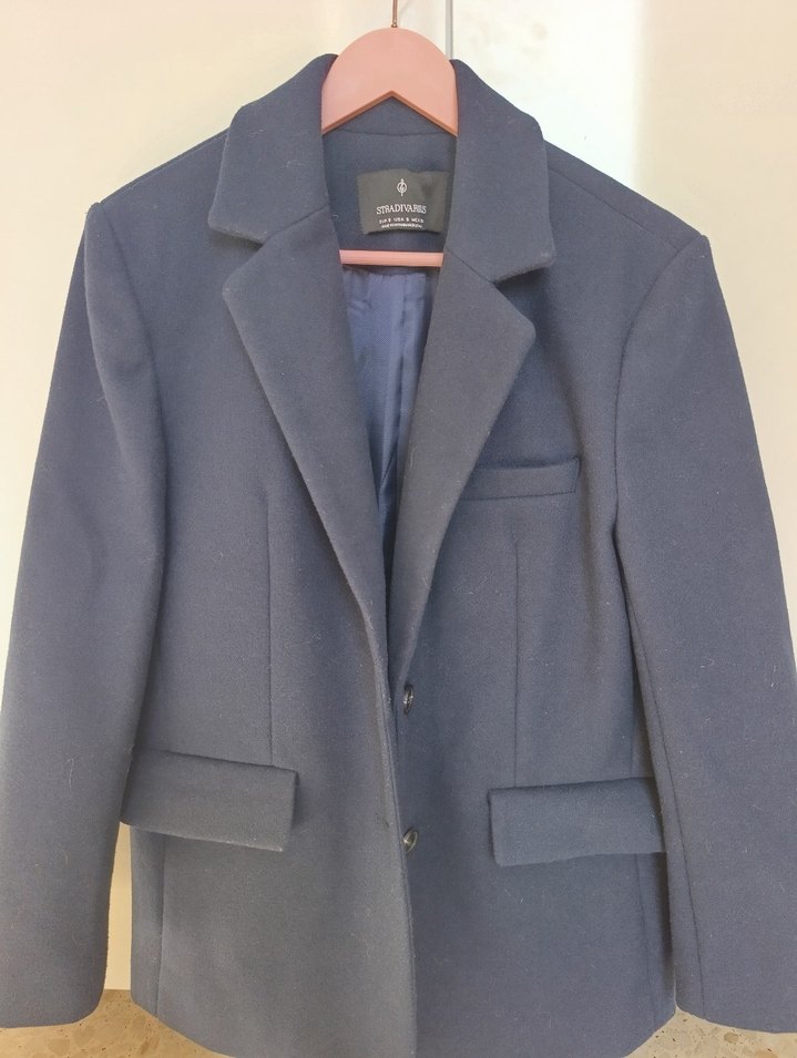 lacivert düğmeli midi kaban, notched lapel yakalı ve uzun kolludur. Regular fit ve yumuşak, sıcak kumaştır. Hiç giyilmedi.