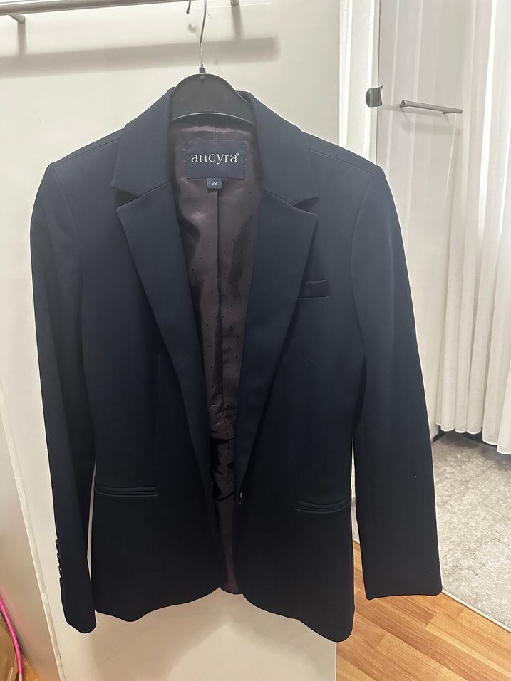 Lacivert renkte, düğmeli, normal kesim uzun kollu kadın blazerdir. Ofis kullanımı için uygundur ve ipeksi dokusu vardır. Ancyra markasına aittir.