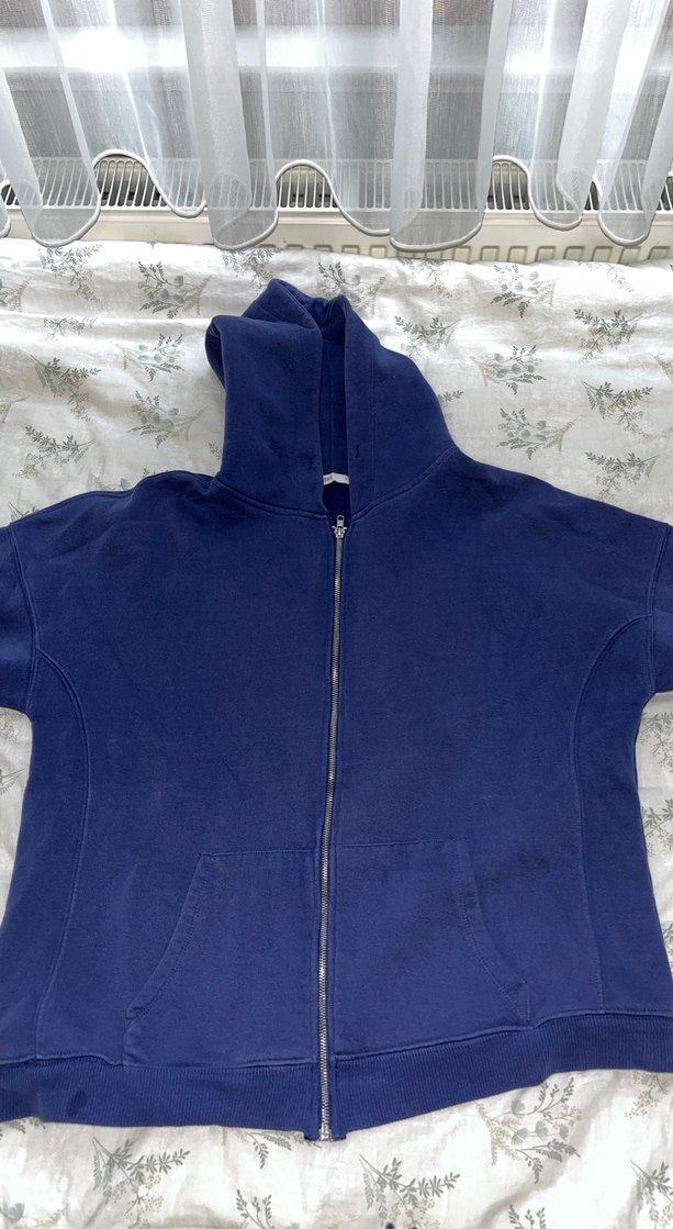 Kadınlar için lacivert fermuarlı, kapüşonlu sweatshirt. Uzun kollu, bol kesim ve yumuşak, sıcak kumaştan yapılmıştır. Günlük kullanım için uygundur . alt lastigi biraz gevsek katlama olmuyor dumduz duruyor birde arka kisminda kucuk defo var