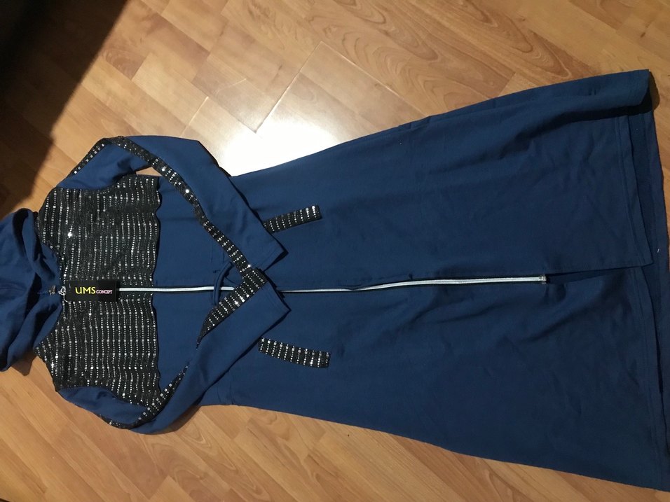Kadınlar için fermuarlı, lacivert sentetik kumaş ve parıltılı siyah detaylarla sokak modası ve spor şıklığını birleştiren uzun swet