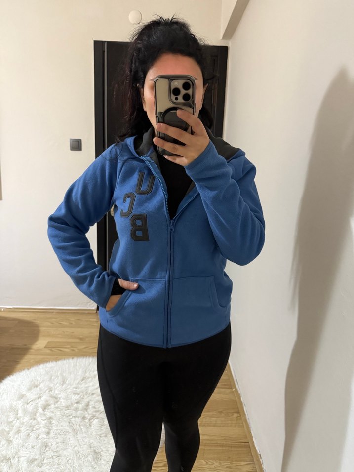 Lacivert fermuarlı, uzun kollu ve bisiklet yaka, baskılı detaylı, yumuşak ve sıcak kumaştan spor ve günlük kullanıma uygun sweatshirt.
