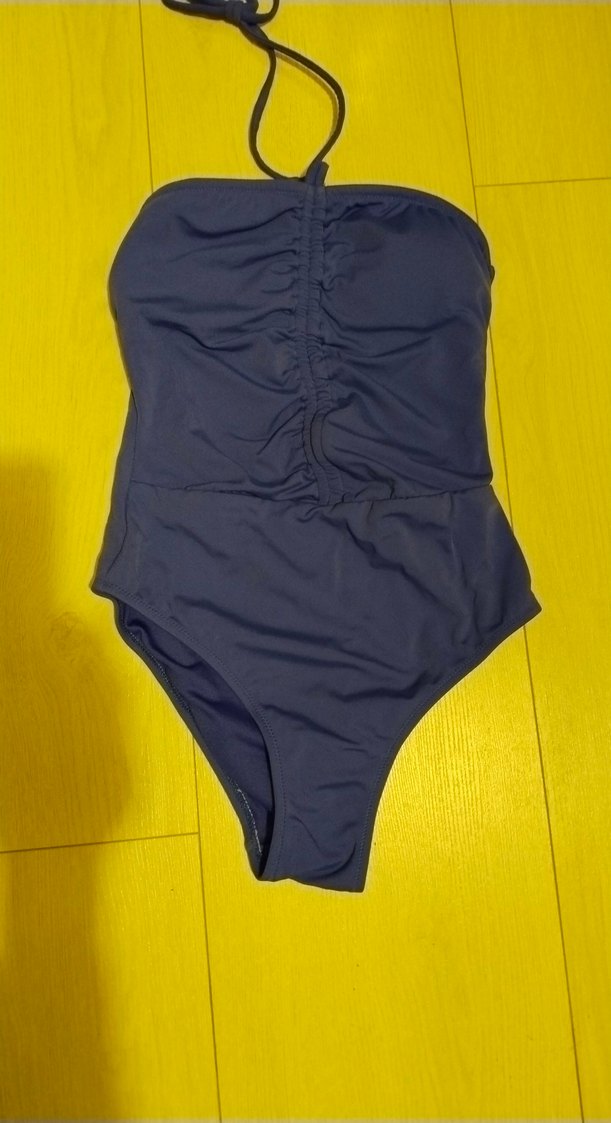 Kadınlar için ince askılı, önü büzgülü ve lacivert renkli bu dar kesim mayo, plaj ve spor tarzına uygun şık ve cesur bir görünüme sahiptir.