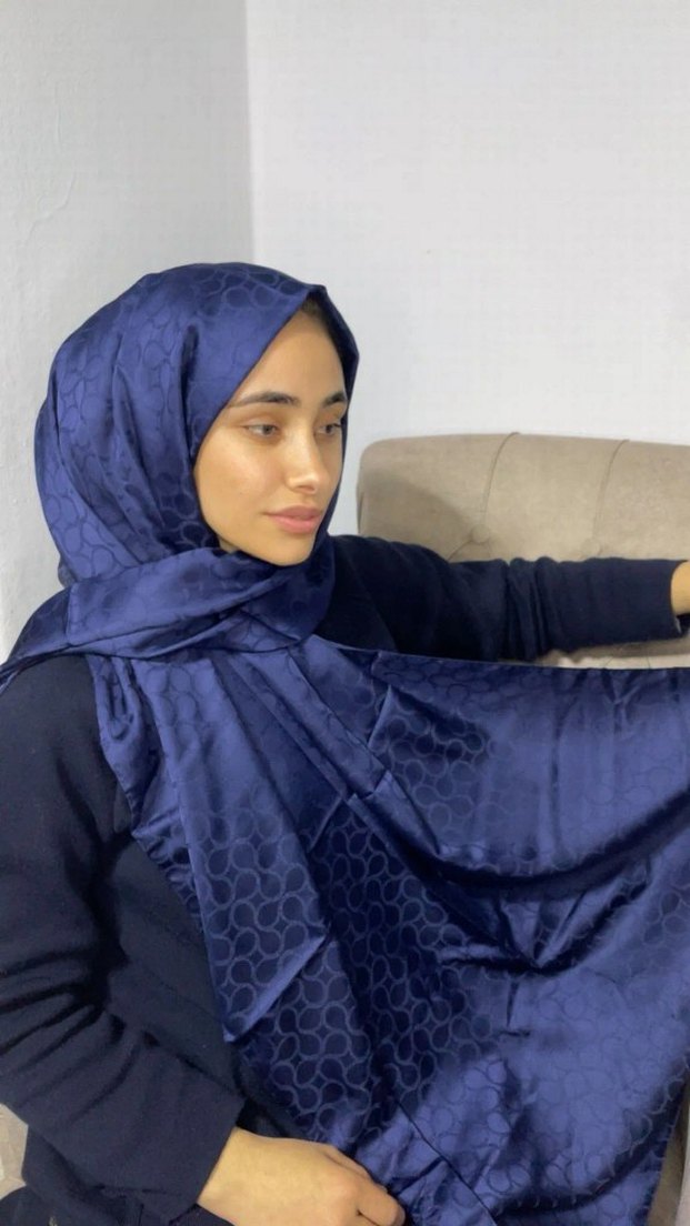 Kadınlar için ipek dokulu, kendinden desenli lacivert şal, mütevazı ve çağdaş rahat stili bir arada sunar. jakarlı şal modelleri renklerimiz mevcuttur adet fiyatıdır