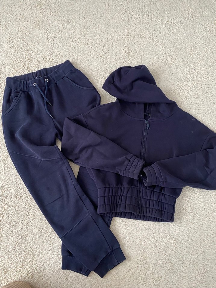 Kadınlar için koyu mavi renkli, fermuarlı kapüşonlu korseli üst ile eşleşen polar eşofman takımı. Rahat ve günlük kullanım için uygun. ♀️