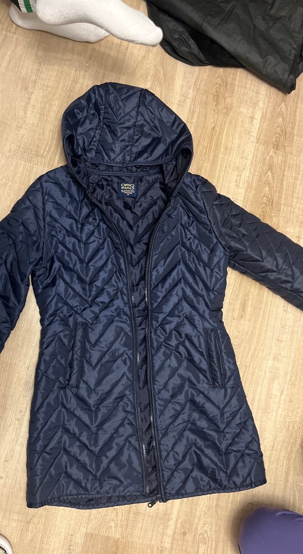 Lacivert renkli, kapüşonlu ve fermuarlı, uzun kollu, vücuda oturan kadın mont. Sentetik kumaştan üretilmiş, midi boyda ve günlük kullanıma uygun sıcak tutan bir modeldir.
