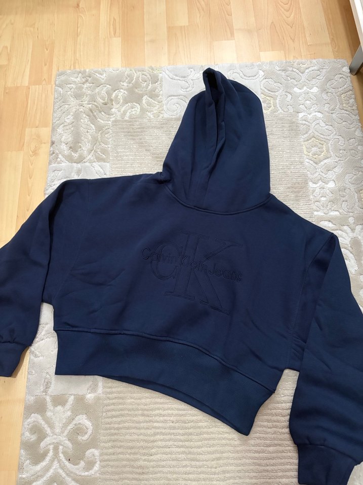 Kadınlar için lacivert kapüşonlu sweatshirt, uzun kollu ve salaş kesimlidir. Yumuşak, örme kumaştan yapılmıştır ve günlük kullanım için uygundur.