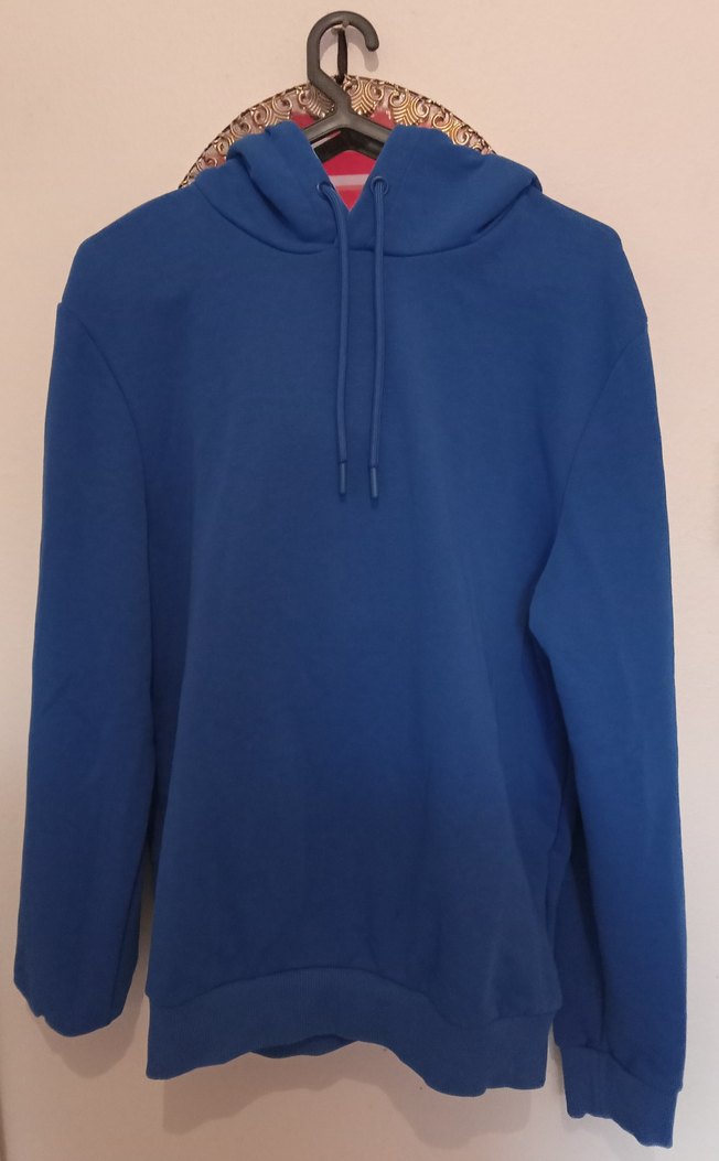 Kadın lacivert kapüşonlu sweatshirt, uzun kollu ve rahat kesimlidir. Yumuşak ve sıcak kumaştan yapılmıştır, günlük kullanım için uygundur.