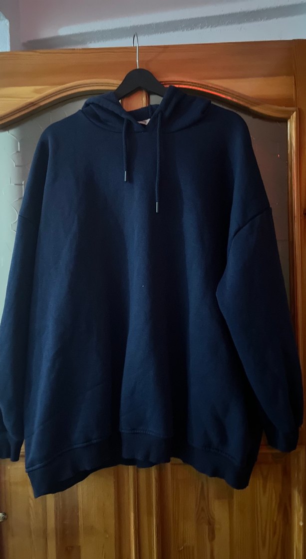 Kadınlar için lacivert, kapüşonlu, bol kesim ve uzun kollu sweatshirt. Yumuşak ve sıcak kumaştan, rahat ve günlük kullanıma uygun.