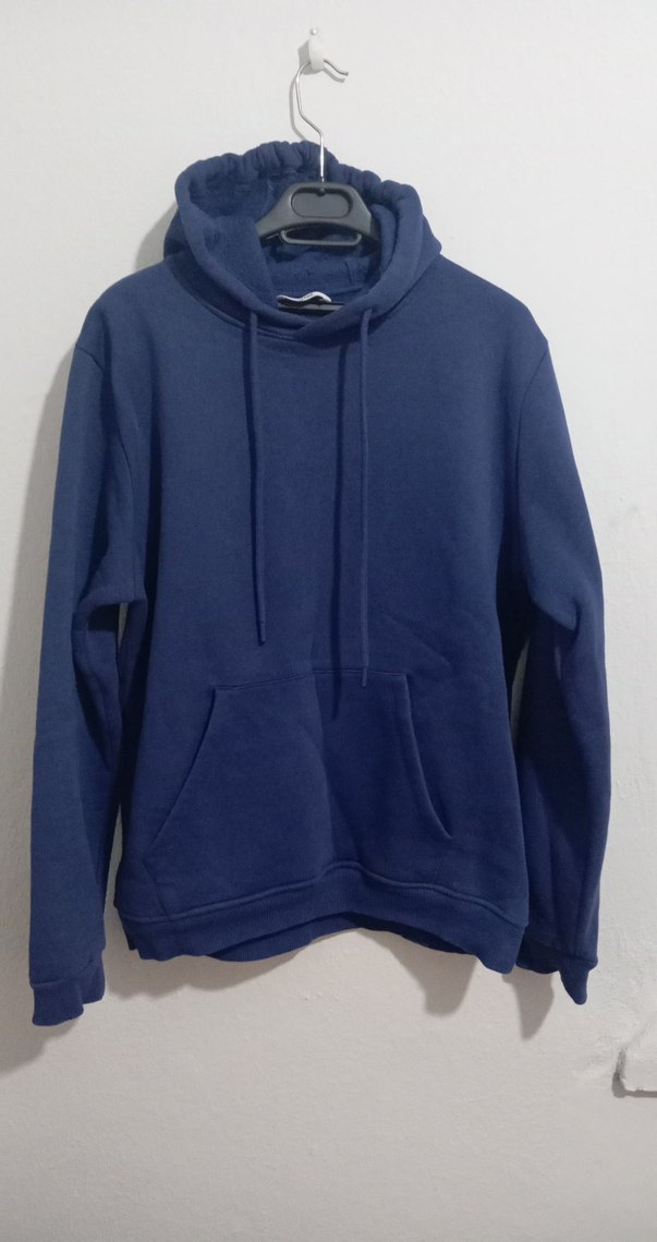 Kadın lacivert kapüşonlu sweatshirt, uzun kollu ve bol kesimdir. Ön cepli ve yumuşak, sıcak kumaştan üretilmiştir. Günlük kullanıma uygundur. 3-4 kez giyildi yeni ayarındadır