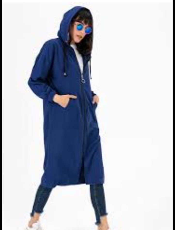 Kadınlar için lacivert uzun fermuarlı yağmurluk, kapüşonlu ve uzun kolludur. rahat ve bol kesim bir defa kullanıldı sıfırdan farksız o yüzden bu ürün tek fiyat