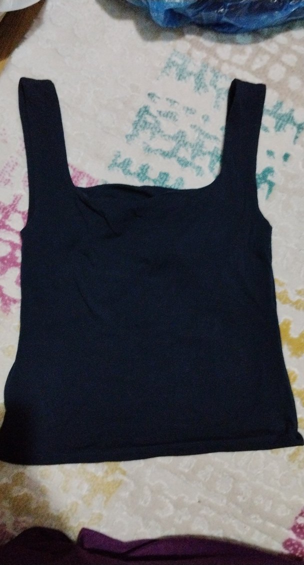 Kadınlar için kolsuz, kare yakalı ve normal boyda, vücuda oturan lacivert atlet. Yumuşak sentetik kumaştan üretilmiştir, günlük kullanıma uygundur.