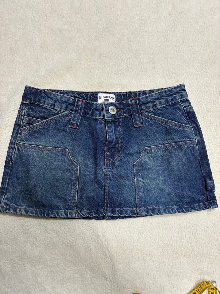 Lacivert renkli, kemerli ve desen içermeyen bu fitted denim mini etek, günlük rahat kullanım için uygundur.