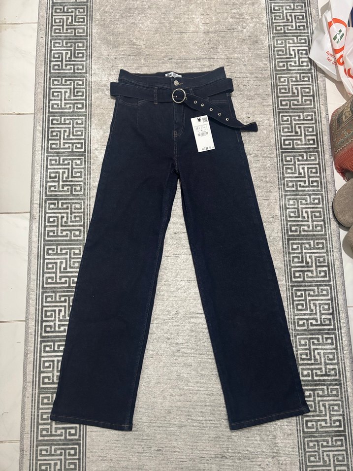 Kadın Lacivert Kemerli Kot Pantolon