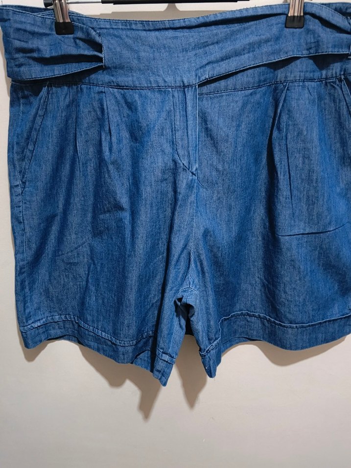Lacivert kot kumaştan, kemerli ve bol kesim kısa mini şort. Günlük sokak stili ve açık hava aktiviteleri için uygundur. ✨ağsında biraz incelme var ama kullanıma engel değildir temizdir.