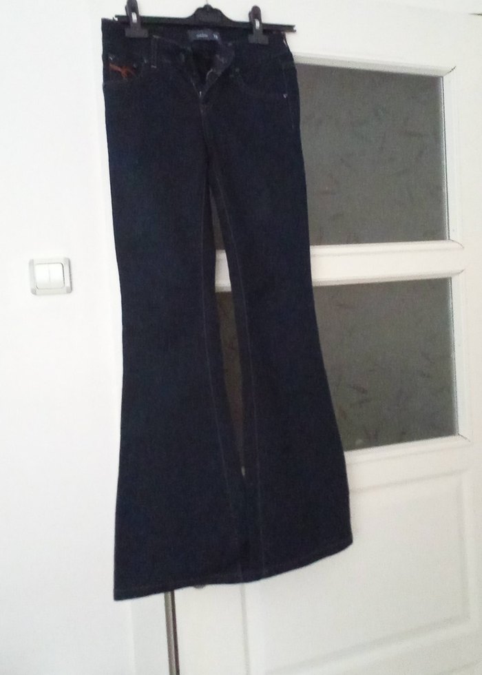 Kadınlar için kemerli, normal boy midi uzunluğunda ve lacivert renkte kot pantolon. Günlük ve ofis kullanımı için uygundur.