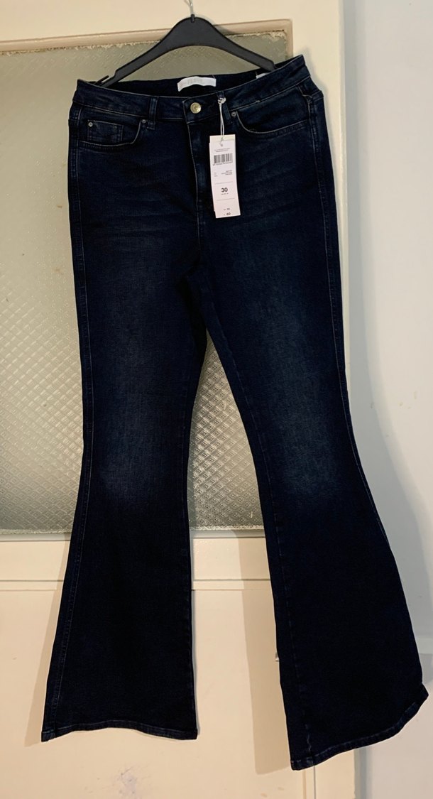 Kadın Lacivert Kemerli Normal Boy Kot Pantolon