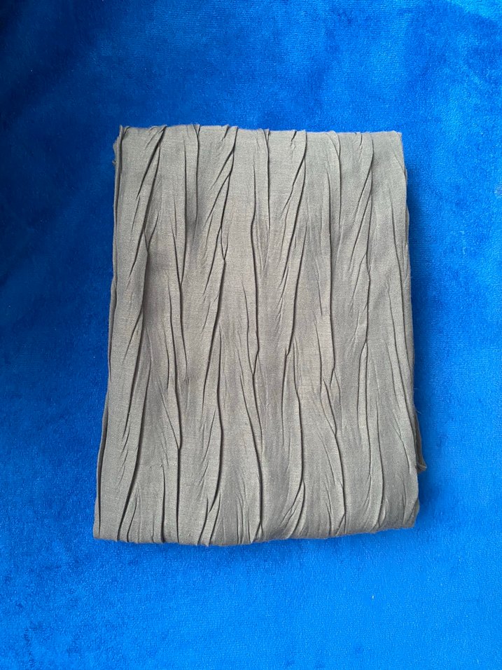 Kadınlar için keten kumaştan yapılmış, gri renkte ve pileli tasarıma sahip sade, minimalist bohem tarzda şal.