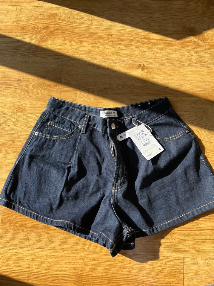 Bu yaz sezonuna ait etiketiyle duruyor hic giyilmedi kendi bedenime yakistirmadigim icin satiyorum 0 urun 42 beden bel39 boy35cm .Kadınlar için lacivert kısa denim şort, bol kesimi ve kısa boyuyla günlük kullanım için rahat ve şık bir sokak tarzı sunar. Desensiz tasarımıyla zahmetsiz şıklık sağlar.