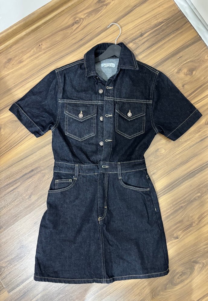 Kadın Lacivert Kısa Denim Tulum