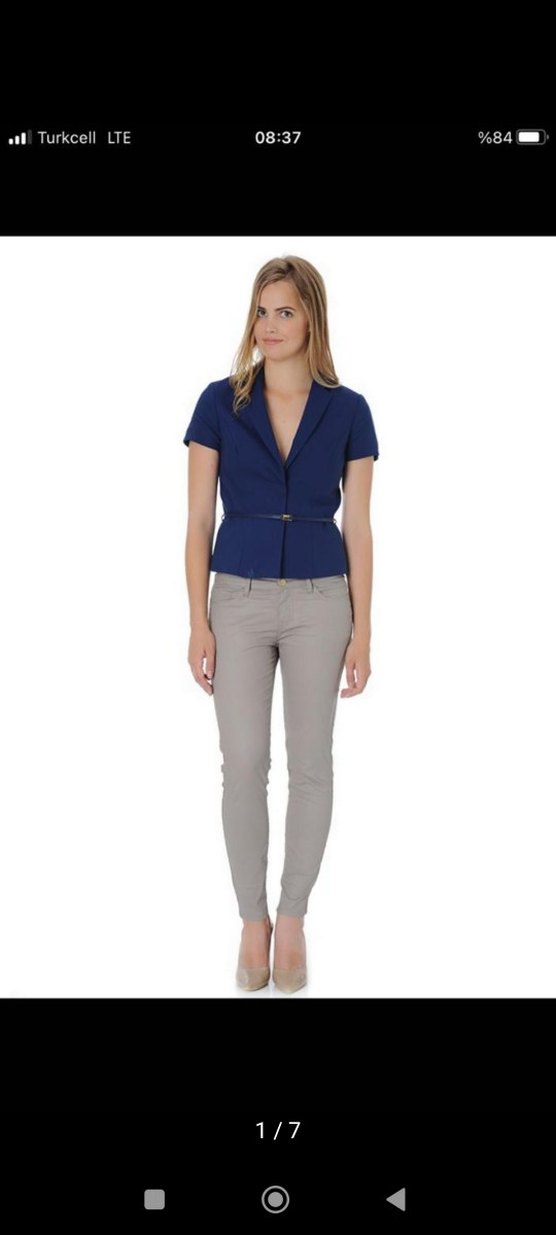 Lacivert renkte, kısa kol ve regular fit kesime sahip pamuklu ceket-blazer. Günlük ofis şıklığı için uygun, desen içermeyen sade tasarım.