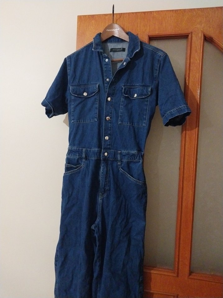 Kadın Lacivert Kısa Kollu Denim Tulum