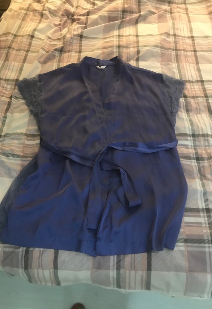 Kadınlar için tasarlanmış, bol kesim ve normal midi uzunlukta lacivert sabahlık. Kısa kollu ve dantel detaylı, rahat goth tarzını yansıtıyor. Belde bağlama ile ayarlanabilir.