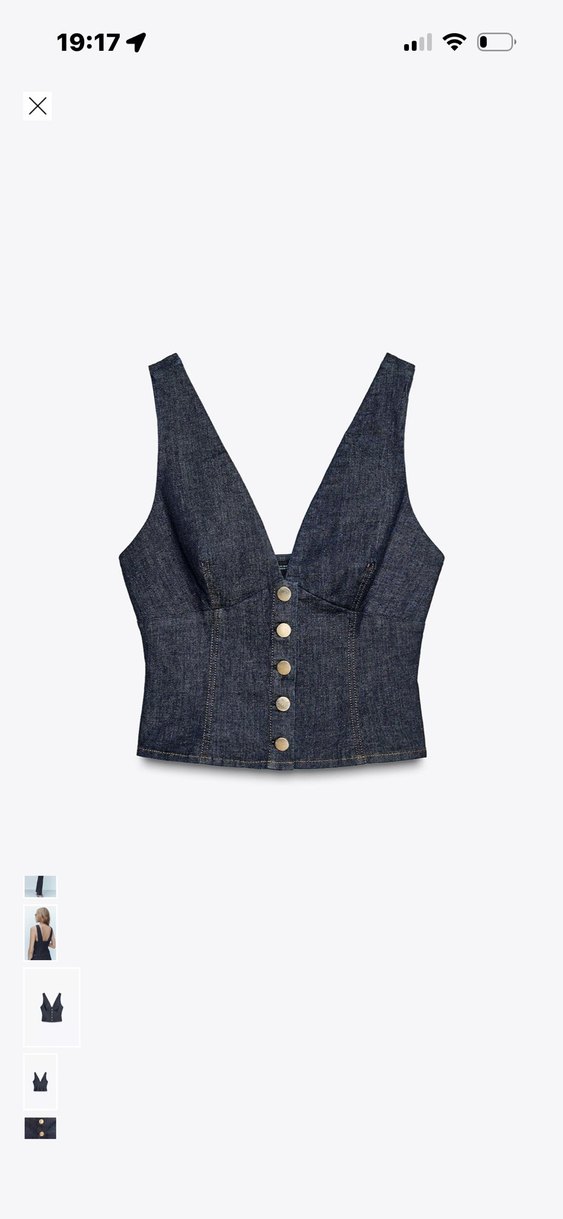 Kadınlar için lacivert kot kumaştan, V yakalı, düğmeli ve kısa kesim fit kesim yelek. Günlük kullanım için rahat ve sokak stili uyumlu.
