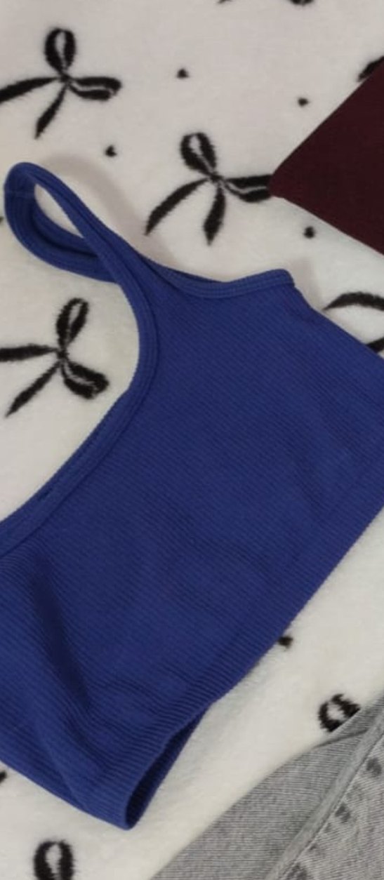 Kolsuz, dar kesim ve kısa boy crop top, tek renk lacivert. Sentetik kumaştan üretilmiş, spor ve şık görünüm sunar. Trendy athleisure tarzına uygun.