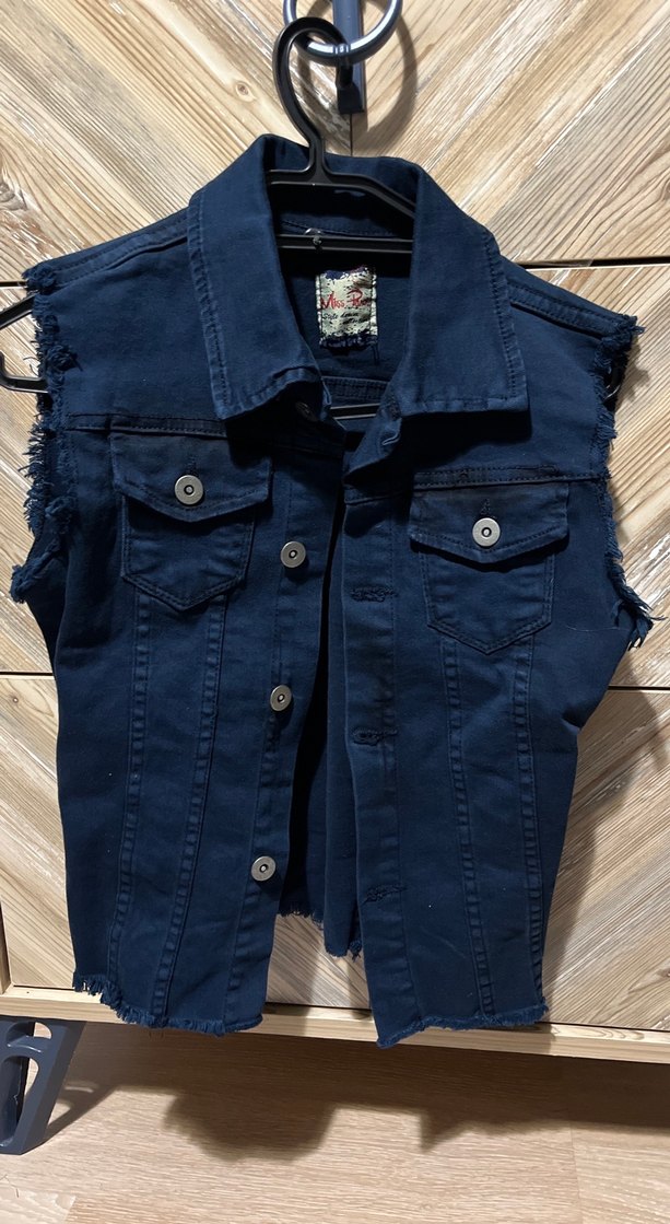 Lacivert kolsuz denim ceket, düğmeli ve kesik yaka detaylı. Bağlama desenli, kısa ve regular fit kesimde, günlük rahat sokak stili için uygun.