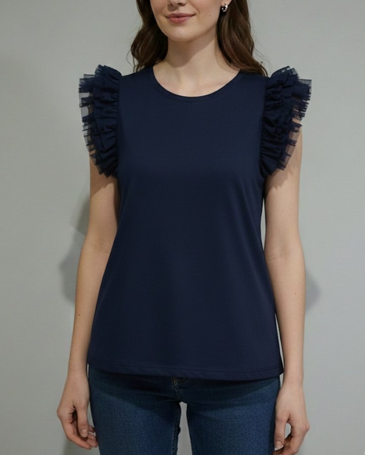 Kadın Lacivert Kolsuz Fırfırlı Bluz - Görsel 1