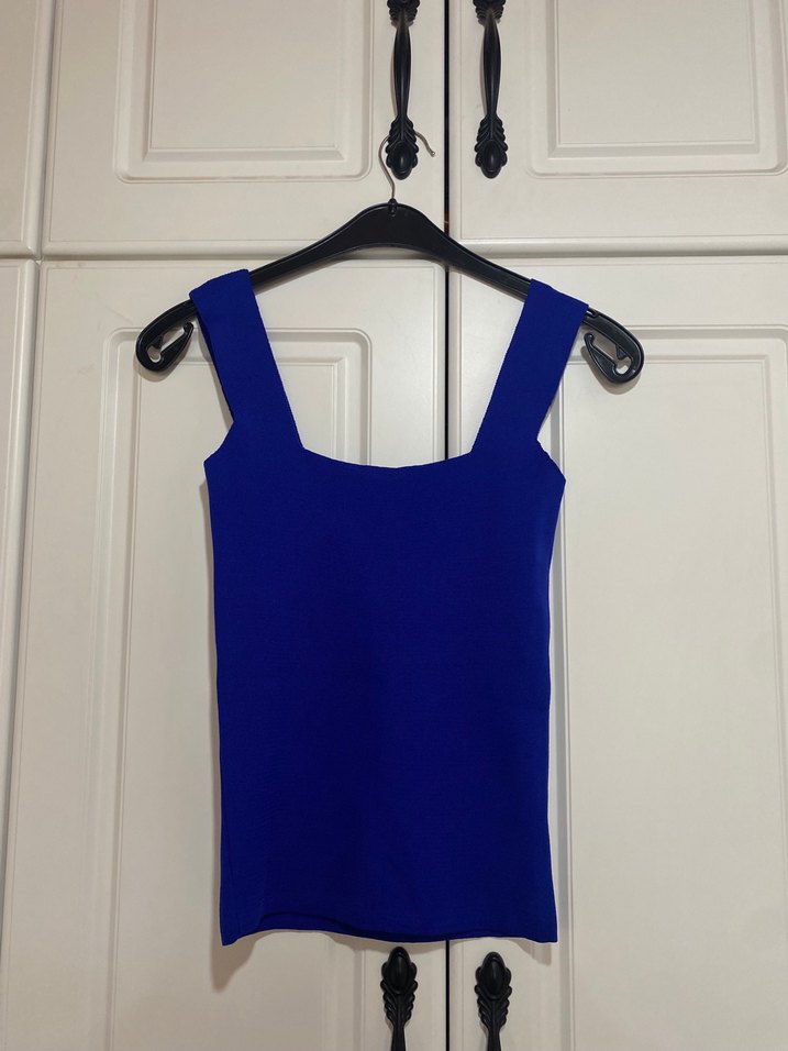 Lacivert renkte, düz yakalı, vücuda oturan kadın kolsuz atlet. Pürüzsüz sentetik kumaştan, günlük kullanıma uygun şık bir sokak stili sunar.