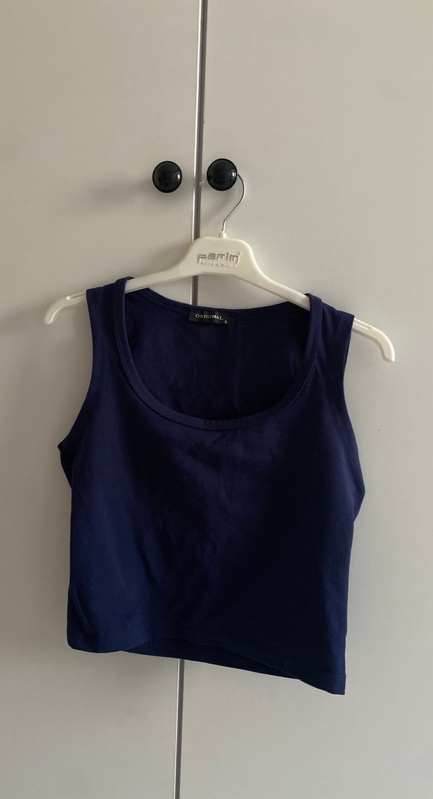 Kadın lacivert kolsuz atlet, yuvarlak yaka ve saten dokusuyla günlük ve sokak stiline uygundur.