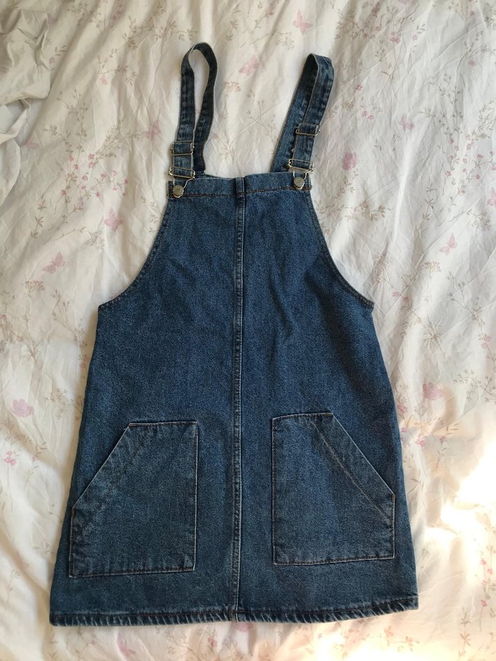 Lacivert kot kumaştan, bol kesim, tokalı ayarlanabilir askılı, büyük ön cepli mini salopet. Kolsuz ve straplez tasarımlı, günlük rahat stil için uygundur.