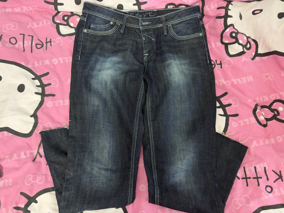 Bu kadın kot pantolonlar, lacivert renkte, tokalı detaylıdır. Denim kumaştan yapılmış, günlük rahat kullanım için uygundur.