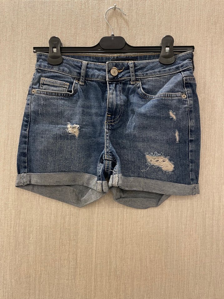 Lacivert kot şort, Kısa boy ve katlanmış paçalarla günlük sokak stili için uygun.