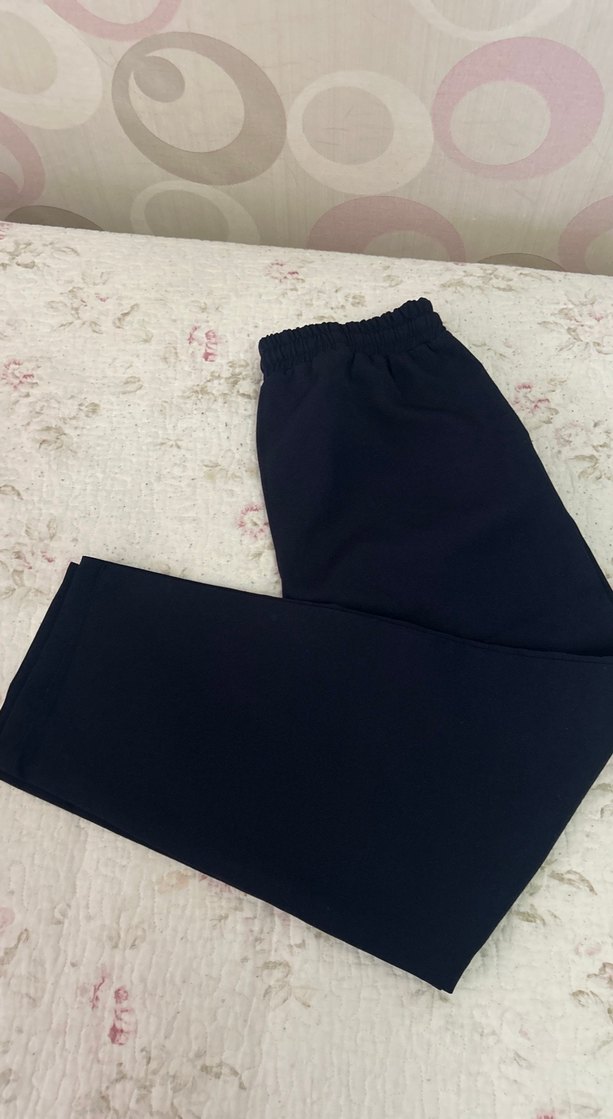 Kadınlar için lacivert kumaş pantolon, normal kesim ve midi boy. Yumuşak ve sıcak kumaştan, rahatlığı artıran lastikli bel ve desen içermeyen sade tasarım. Günlük kullanıma uygun.