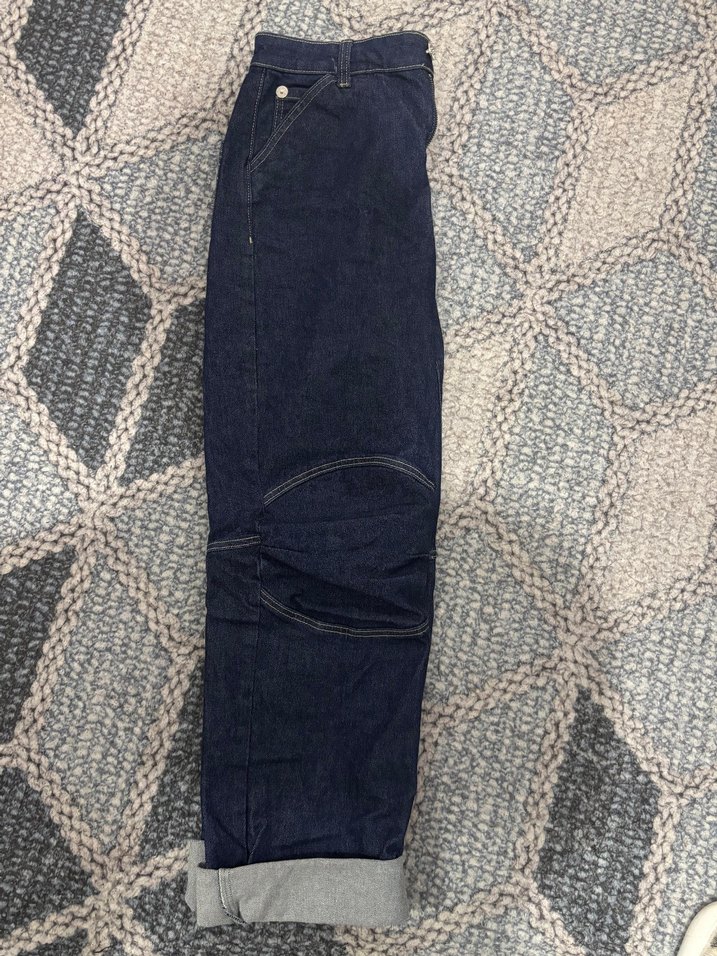 Kadınlar için lacivert renkte, bol kesim denim kot pantolon. Kürk detayları ile rahat ve şık bir sokak stili sunar.