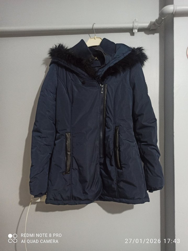 Kadın Lacivert Kürklü Kışlık Mont