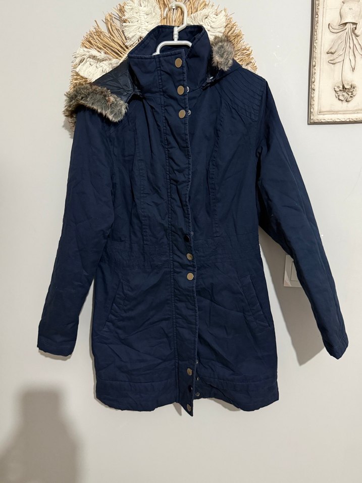 Lacivert şapkası kürk detaylı, uzun kollu , günlük kullanıma uygundur 81 cm dir