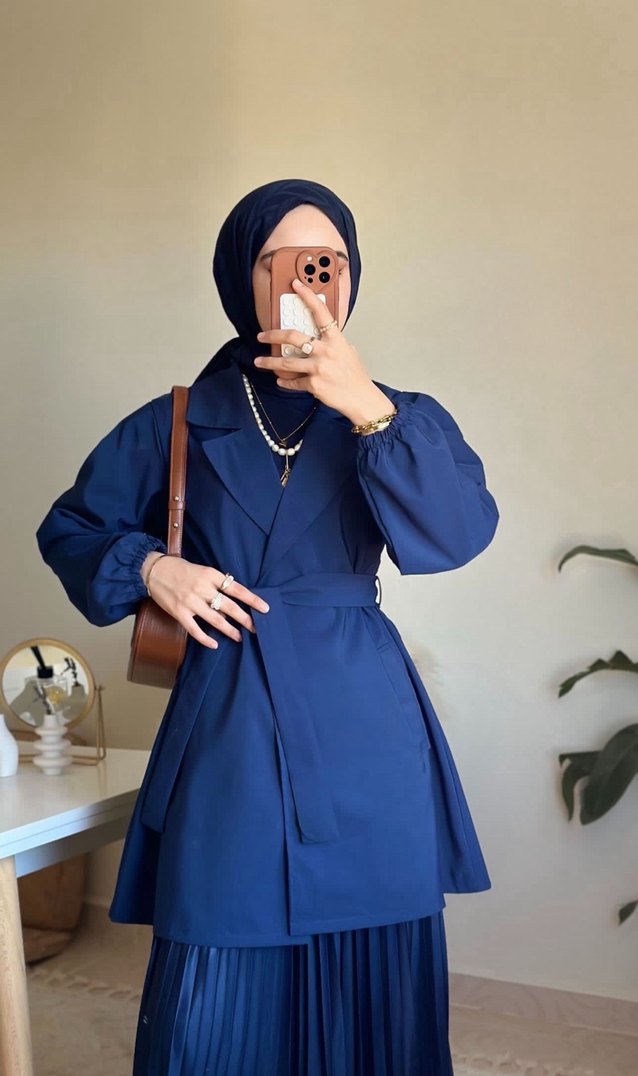 Kadın Lacivert Kuşaklı Uzun Kollu Trençkot