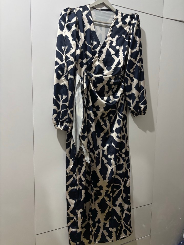 Kadınlar için bol kesimli, bağlamalı ve bağlama desenli uzun elbise. V yaka ve askılı kolları, yumuşak sentetik kumaştan yapılmıştır. Günlük kullanıma uygun özel günlerinizde de kullanabilirsiniz modern tarz.
