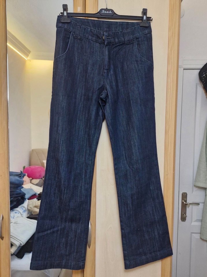 Lacivert, midi boy, bol kesim kot pantolon. Bel kemerli ve günlük rahat kullanıma uygun normcore tarzda tasarlanmıştır.